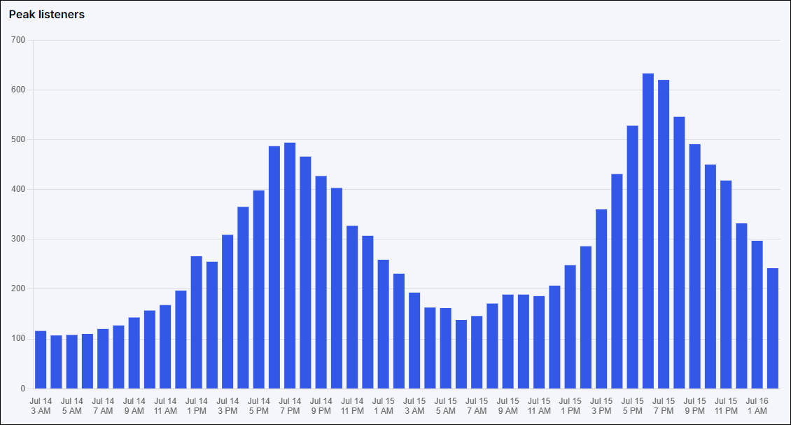 | Peak listeners | This represents the same metric as Session Peak, but presented in a different format. |